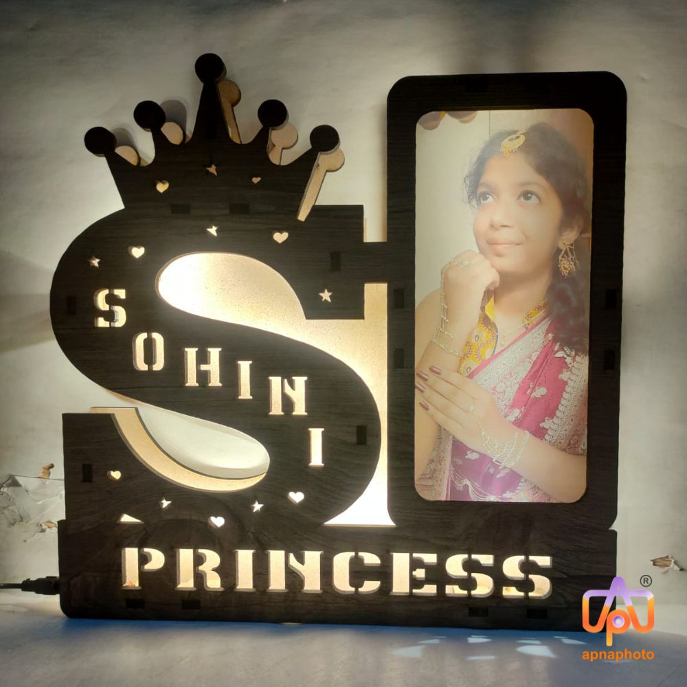 WOODEN PERSONALIZED NAME LED LAMP WITH CROWN